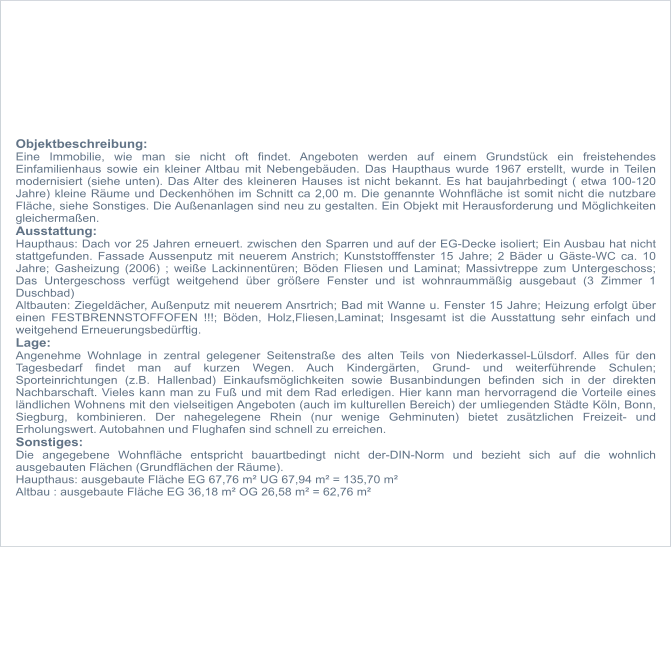 - Bildergalerie - Grundriss: Erdgeschoss (Haupthaus) Grundriss:Kellergeschoss (Haupthaus) Grundriss: Erdgeschoss (Altbau) Grundriss: Dachgeschoss (Altbau) Straßenansicht Eingangsbereich Altbau Nebengebäude Altbau Nebengebäude Altbau Vorderansicht Immobilien Gerber - Rathausplatz 5 - 53859 Niederkassel - 02208.71701