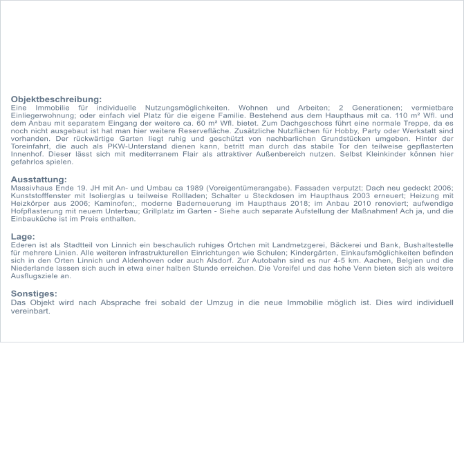 - Bildergalerie - Grundriss: Erdgeschoss Grundriss: Obergeschoss Innenhof Grundriss: Kellergeschoss Rückansicht Diele Wohnen/Essen Wohnen/Essen Vorderansicht Immobilien Gerber - Rathausplatz 5 - 53859 Niederkassel - 02208.71701
